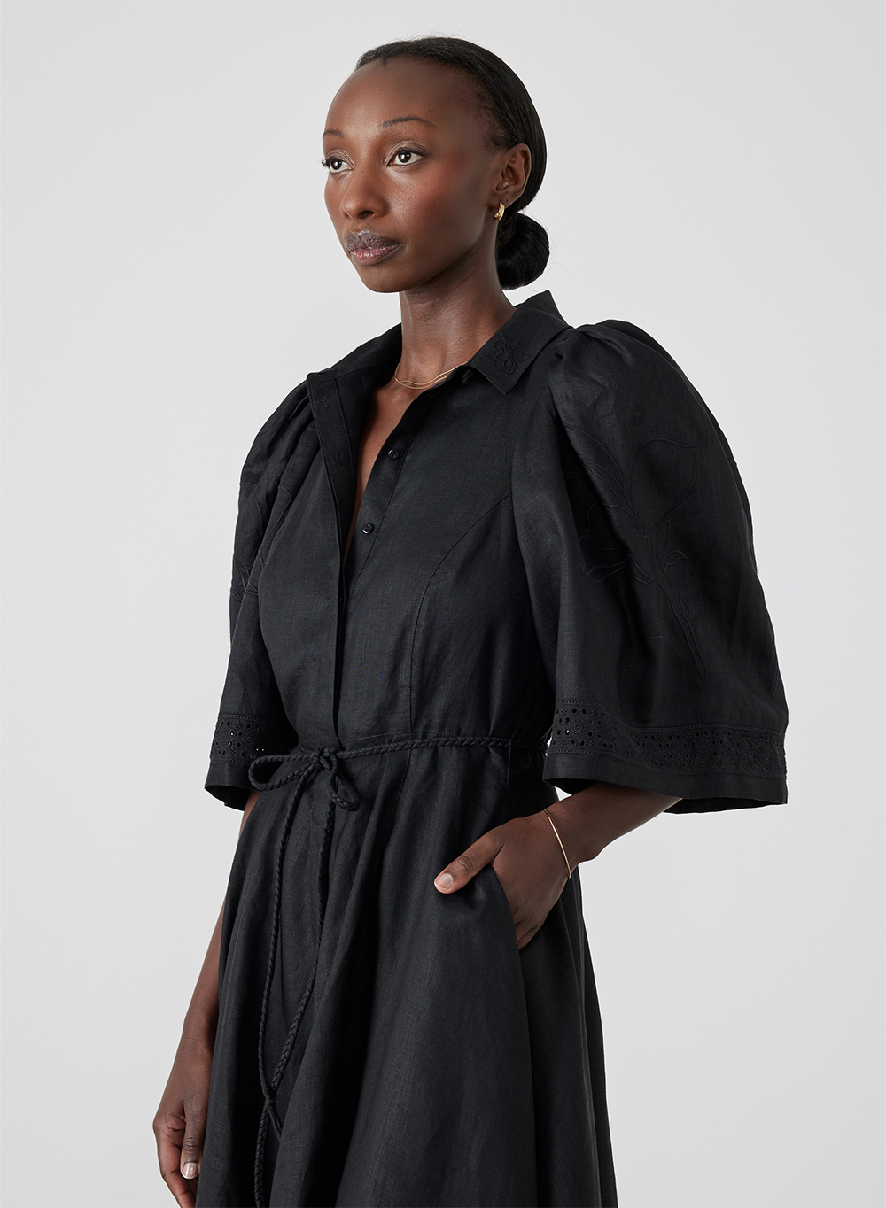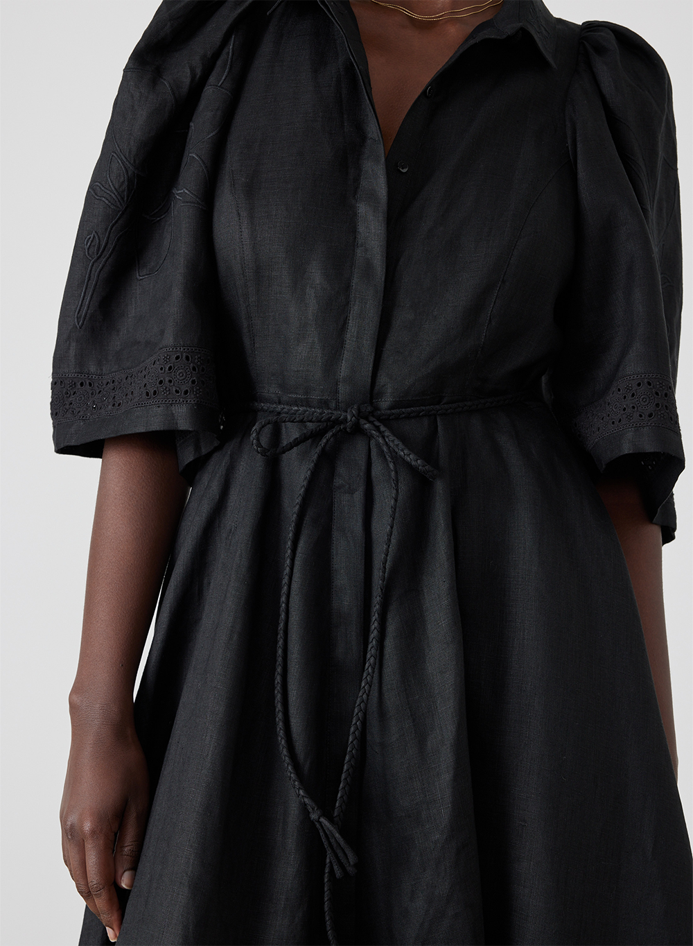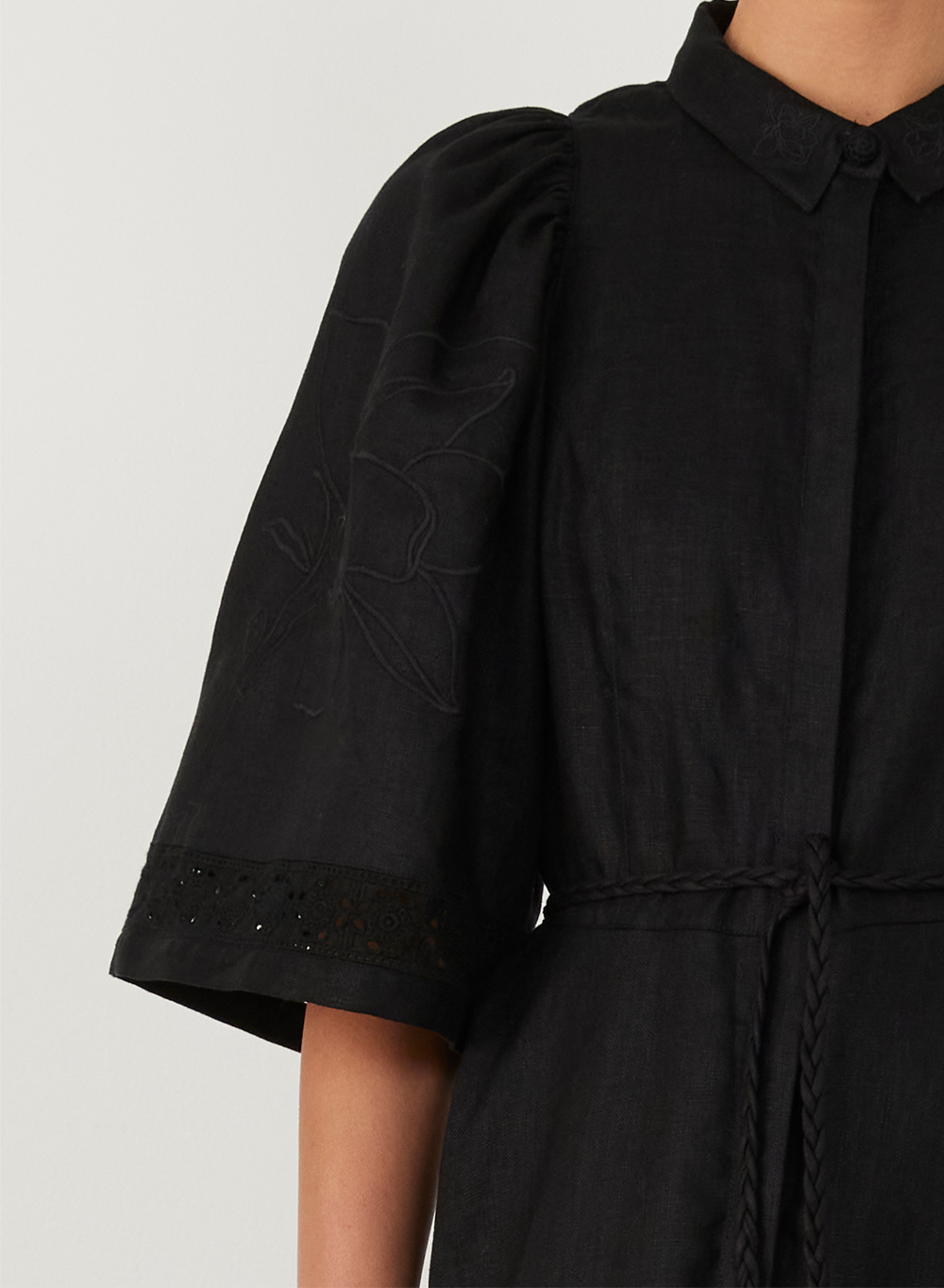 • Self-braided removable waist tie