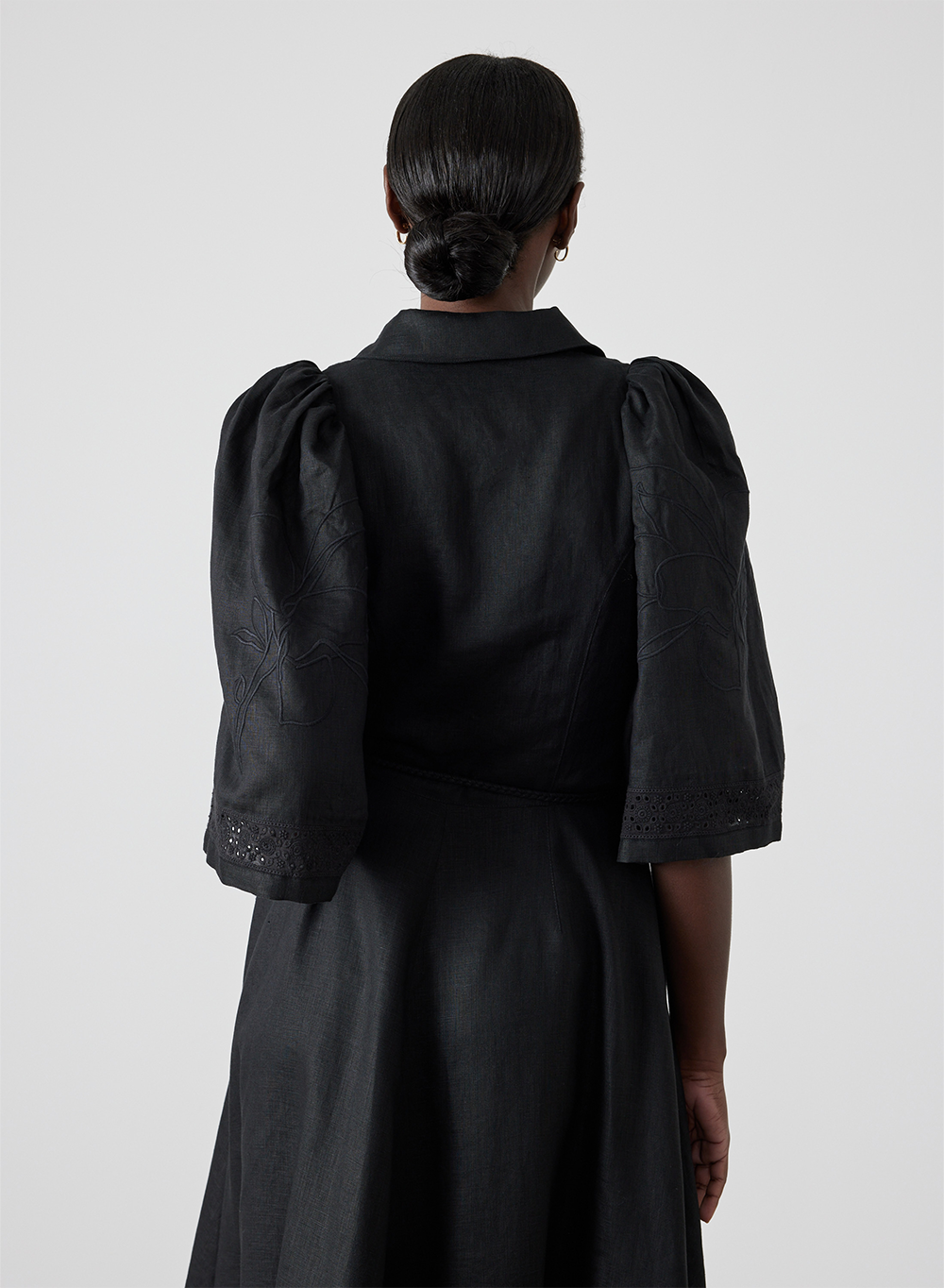 • Cluny lace inserts at the sleeve hem and skirt hem